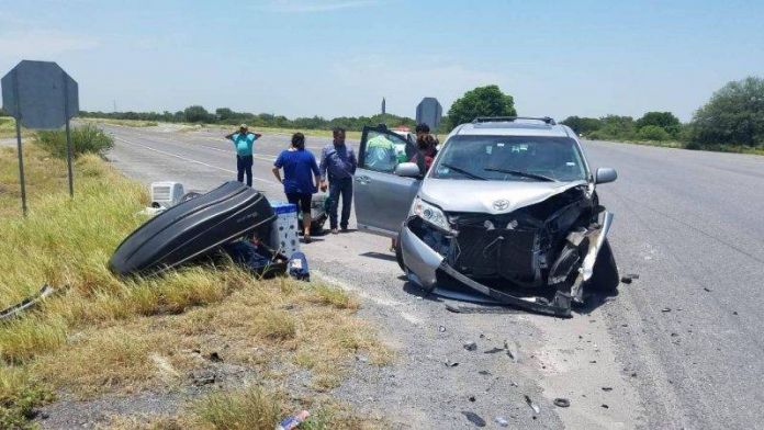 Cd. Victoria, Tam.- Unos paisanos que provenían del estado de Texas chocaron contra un tráiler, tras omitir un señalamiento de alto en un libramiento a las afueras de esta ciudad.