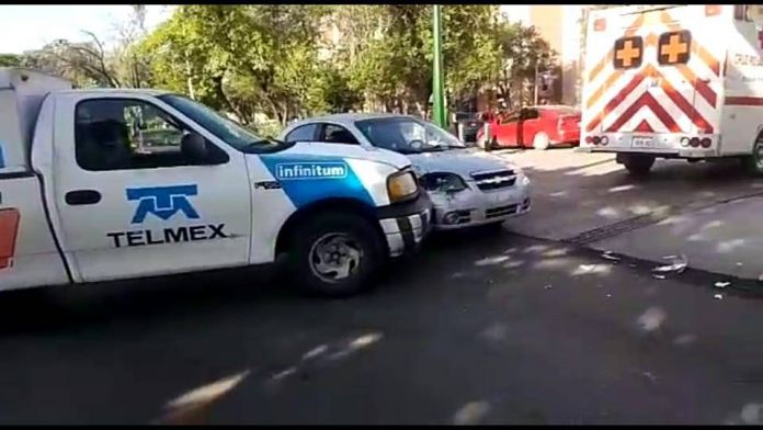 Dos personas lesionadas fue el saldo de un choque ocurrido en el centro de la ciudad, donde participó una camioneta propiedad de (TELMEX) Teléfonos de México.