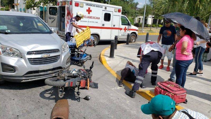 Cd. Victoria, Tam.- Una mujer resultó lesionada e internada en el hospital al igual que su acompañante, cuando la motocicleta en la que viajaban fue impactada por una camioneta, la cual presuntamente omitió el alto.