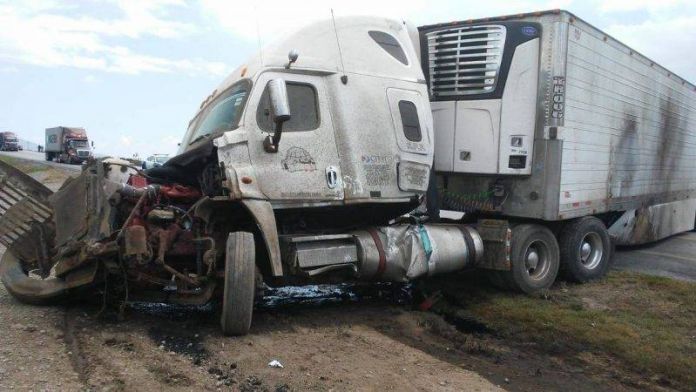 Autoridades informaron que los hechos ocurrieron a la altura del Ejido Álvaro Obregón cuando una camioneta se impactó contra un tráiler quedando ambos fuera de la superficie de rodamiento.