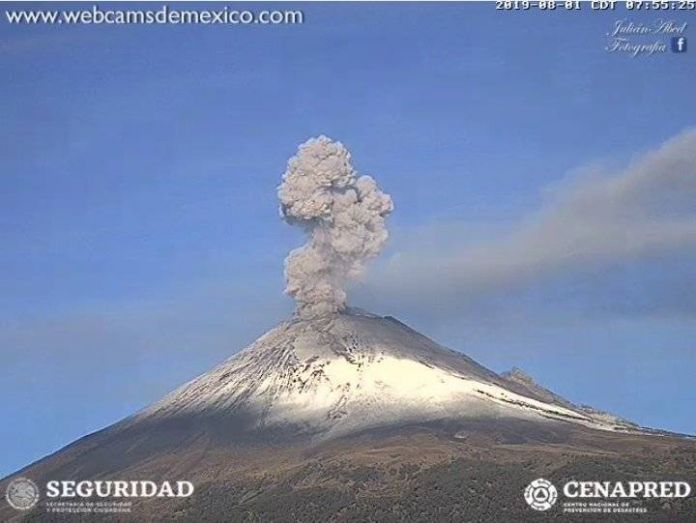 México, 1 Ago (Notimex).- En las últimas 24 horas el volcán Popocatépetl emitió seis explosiones menores, así como 189 exhalaciones acompañadas de vapor de agua, gas y bajas cantidades de ceniza, reportó el Centro Nacional de Prevención de Desastres (Cenapred).