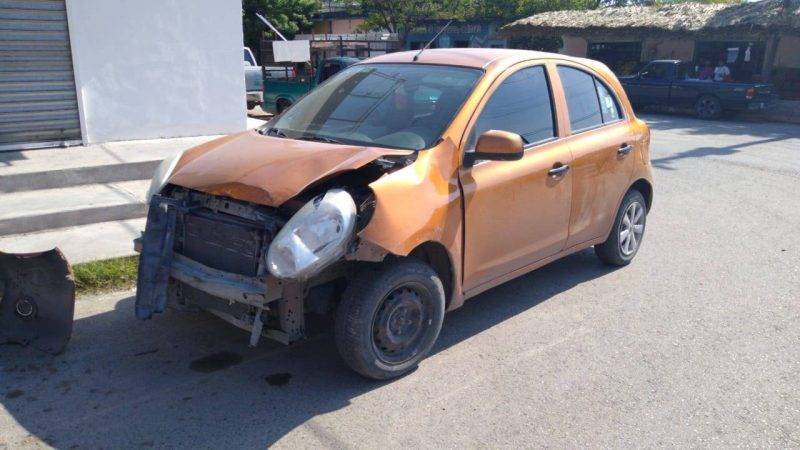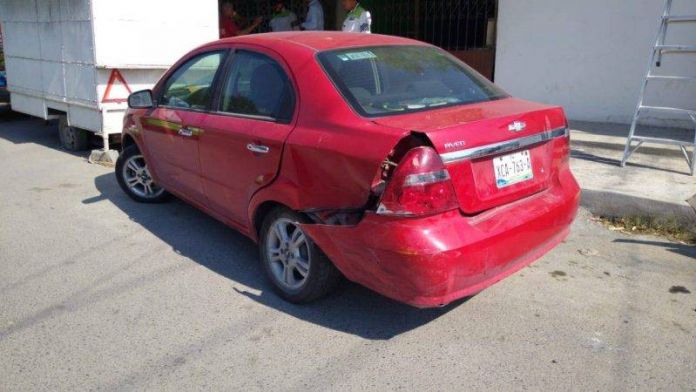 Fue justo al llegar a la calle 27 cuando su conductora ignora el señalamiento de alto siendo impactada de manera lateral por un vehículo Nissan March, el cual se hacía desplazar en sentido de sur a norte.