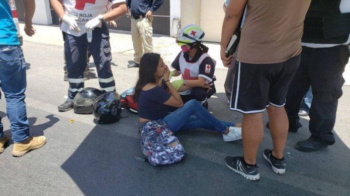 Paramédicos de Cruz Roja arribaron a la zona para atender a la pareja, la cual sufrió golpes y raspones en la mayor parte del cuerpo.