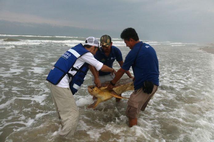 Ciudad Victoria, Tamaulipas.- El Gobierno de Tamaulipas continúa con la implementación del Programa de Protección de Tortugas Marinas, como es el caso de la tortuga lora en su hábitat de anidación, lo que en forma permanente coadyuva a la protección, recuperación y manejo de las poblaciones de diversas especies.