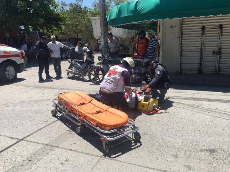 Fue al llegar al cruce con la calle Condueños, cuando el empleado rebasa límite de alto y termina estrellándose contra otra motocicleta marca Honda, la cual manejaba el lesionado.