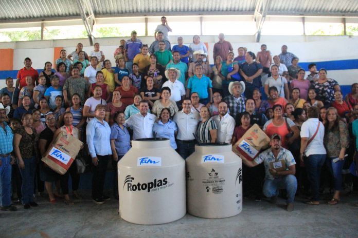 En el evento se hizo entrega simbólica de los siguientes insumos: Tinaco 450 L., de 600 L., de 750 L., de 1100 L., de 2500 L., bebedero de 1000 L. Y de 1700 L.
