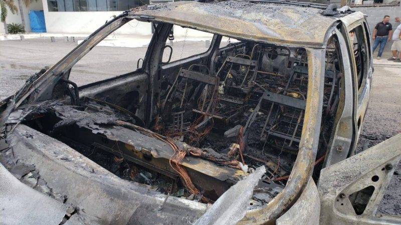 Casi de inmediato la camioneta empezó a incendiarse abarcando el motor y el interior de la unidad.