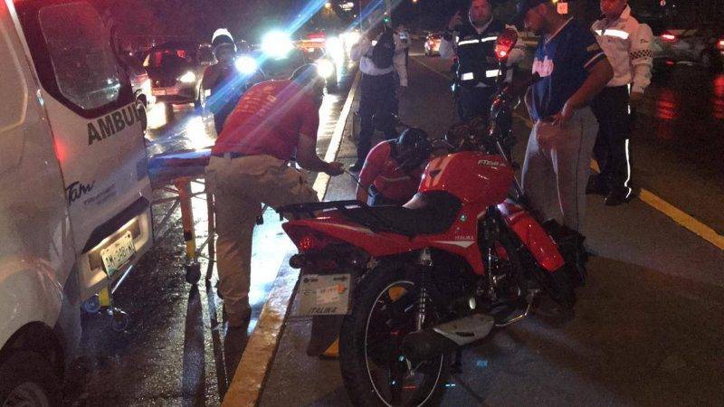 Tránsito Local, informó que la pareja viajaba a bordo de una motocicleta sobre el Eje Vial y presuntamente su conductor aplicó el sistema de frenos delantero lo que provocó que perdieran el control y derraparan.