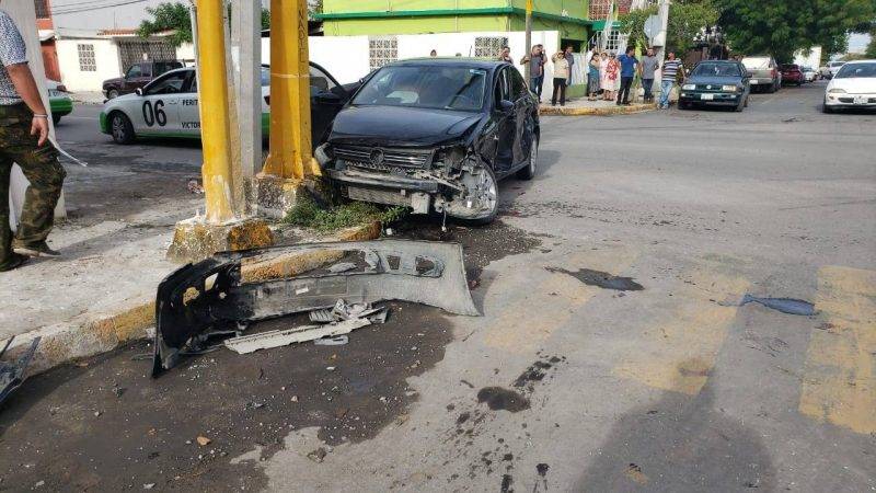 Cd. Victoria, Tam.- Tres personas lesionadas, entre ellos un bebé, dejó como saldo un aparatoso accidente en las calles del 21 Coahuila luego de que una de las unidades ignorar a la luz roja del semáforo.
