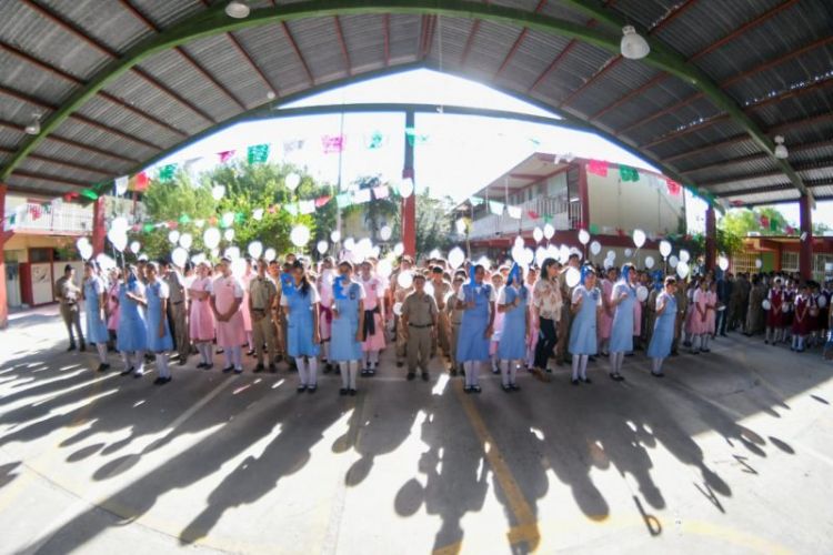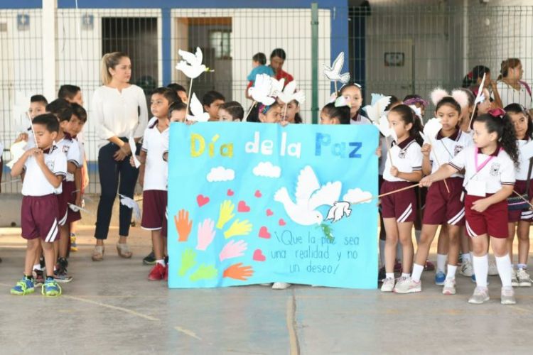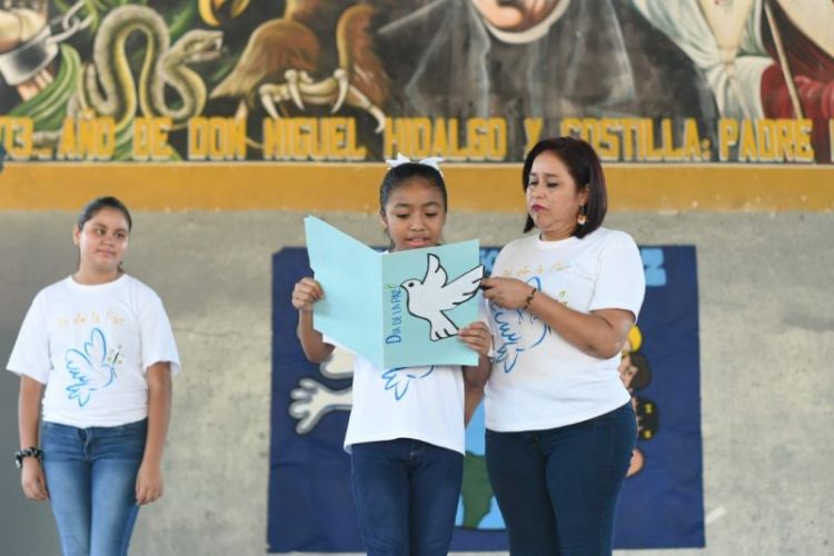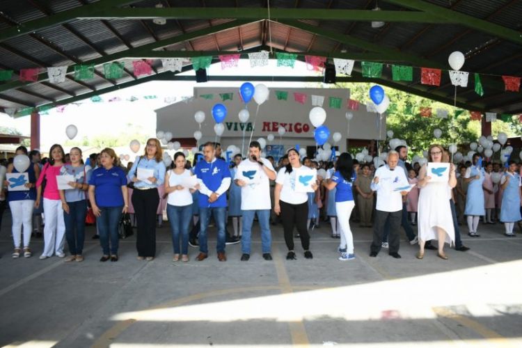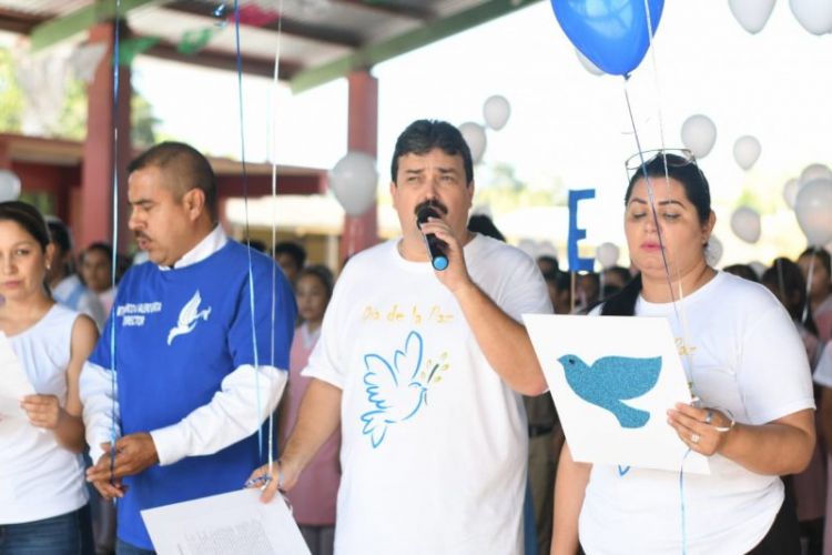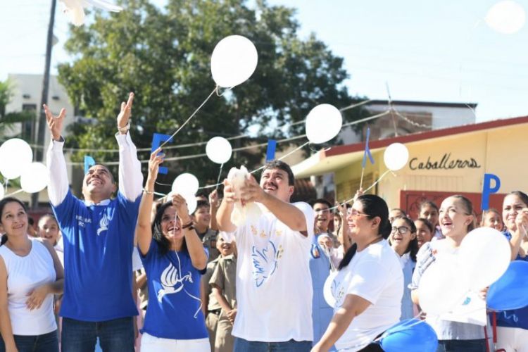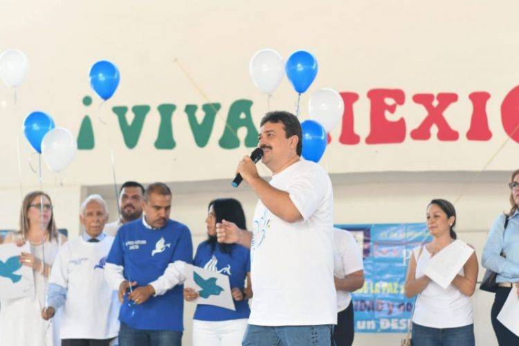Posteriormente se trasladaron a la secundaria general numero uno, donde los estudiantes soltaron globos blancos en símbolo del deseo de la paz en el mundo y por supuesto en el municipio, ahí, el Alcalde hizo un llamado a los jóvenes para que eviten ser parte de las injusticias que se presentan diariamente a través de redes sociales o incluso dentro de sus hogares.