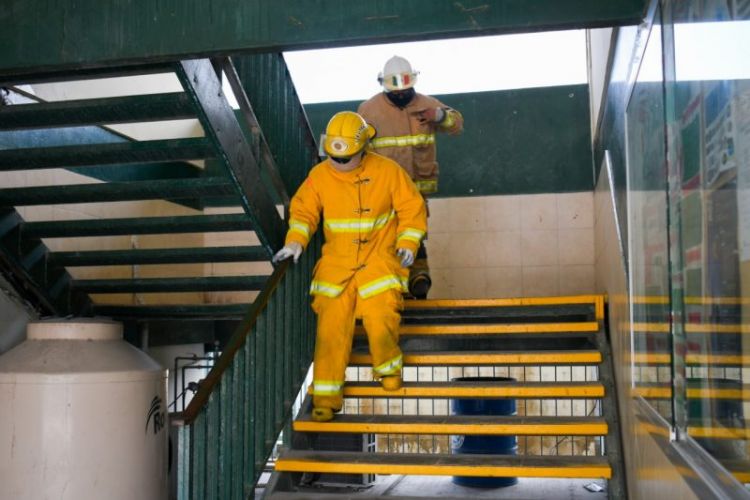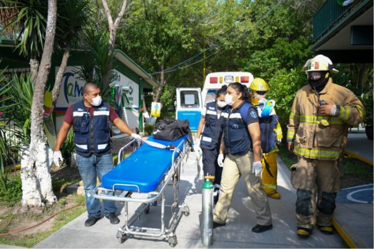 El ejercicio consistió en la búsqueda y rescate de personas lesionadas tras un llamado por incendio, a lo que el personal de bomberos y paramédicos acudió de inmediato, logrando la atención de cuatro personas.