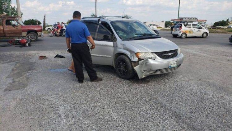 Dos personas que viajaban a bordo de una motocicleta sobre el libramiento Naciones Unidas terminaron estrellándose en la parte lateral de una camioneta cuyo conductor tomó el retorno sin hacer su respectivo alto.
