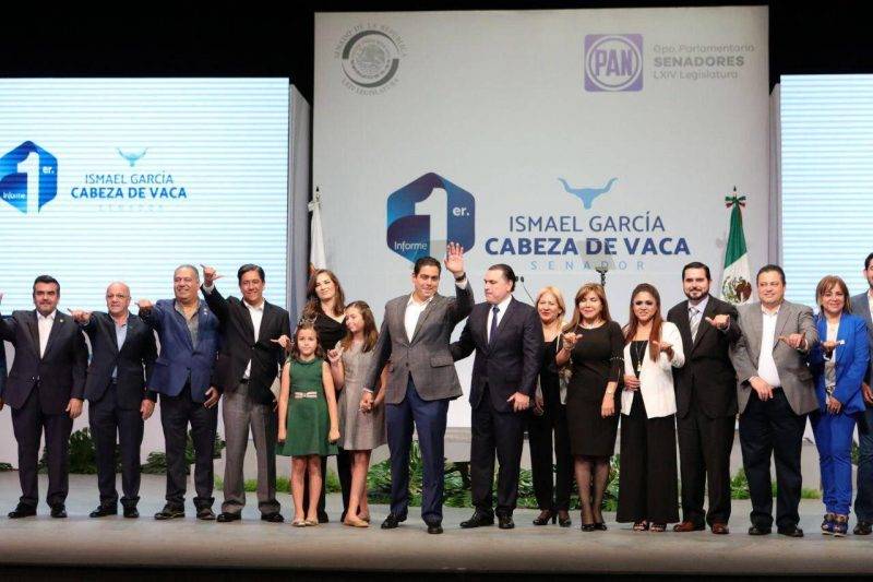 En su primer informe legislativo acompañaron al senador Ismael García Cabeza de Vaca su esposa Evelyn y sus dos hijas; Marco Antonio Gama Basarte, senador del PAN por San Luis Potosí; Gerardo Peña Flores, presidente de la Junta de Coordinación Política del Congreso del Estado; Maki Ortiz Domínguez, alcaldesa de Reynosa; Francisco Elizondo Salazar, presidente estatal del PAN, así como alcaldes, diputados locales e invitados.