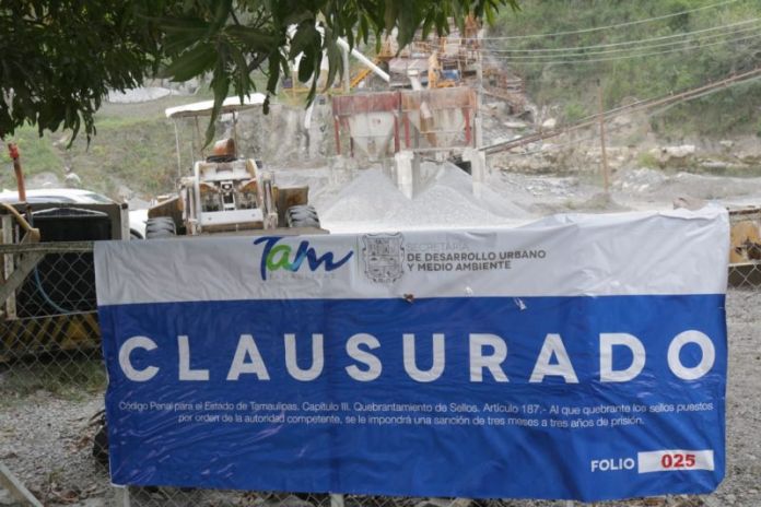 La clausura se realizó debido a que carece de permisos de impacto ambiental, violando el Código para el Desarrollo Sustentable del Estado de Tamaulipas.