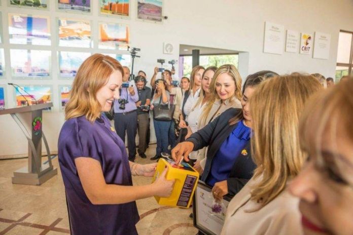 La presidenta del Sistema DIF Estatal, Mariana Gómez de García Cabeza de Vaca acompañada del Director del CRIT Tamaulipas, Baldomero López Zamora