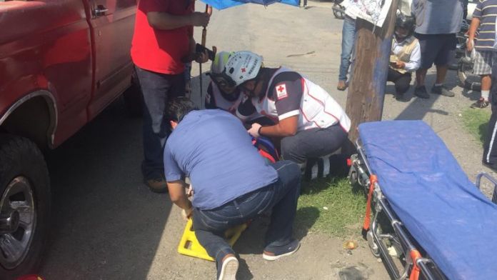 Los hechos ocurrieron en el ocho y Francisco Mina a donde arribaron paramédicos de la Cruz Roja quienes trasladaron a la mujer, quien resulto con una probable fractura.