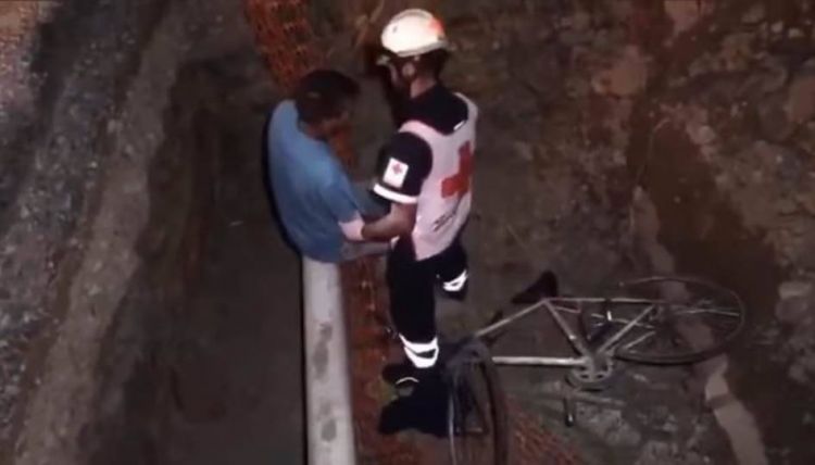 Al lugar arribaron paramédicos de la Cruz Roja quienes se encargaron de brindarle los primeros auxilios al ciclista que todavía se encontraba dentro de una enorme zanja.