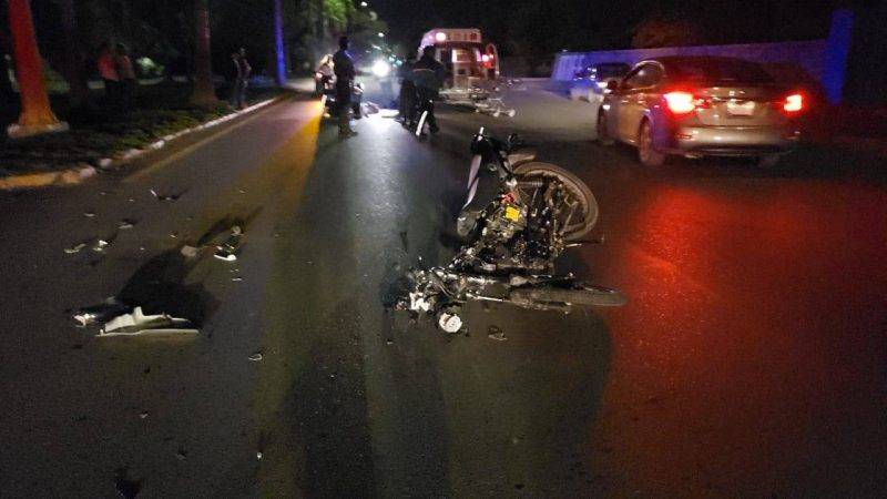 El impacto provocó que la motocicleta quedara destruida y su tripulante saliera volando por los aires varios metros hasta quedar tendido en el pavimento.