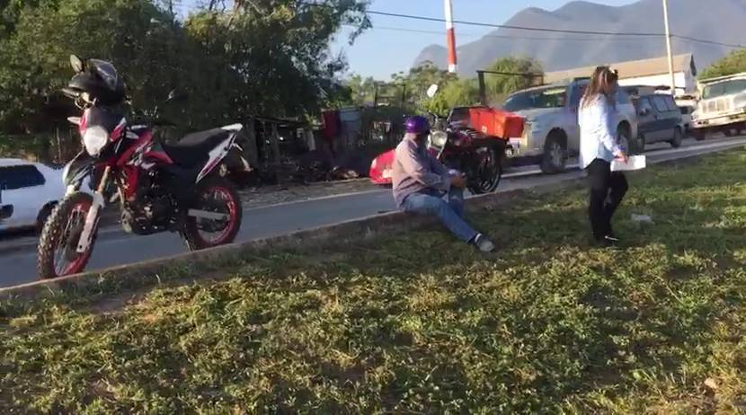 Cd. Victoria, Tam.- Con golpes en varias partes del cuerpo resultaron dos motociclistas al chocar entre ellos y posteriormente proyectarse contra un vehículo que se encontraba haciendo alto.