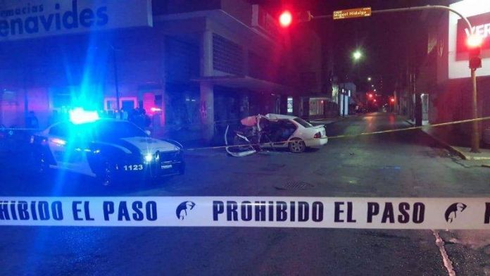 Cd. Victoria, Tam.- Sin vida y en el interior de un vehículo todo destrozado quedaron los cuerpos de dos jóvenes luego de estrellarse contra el pilar de un negocio.