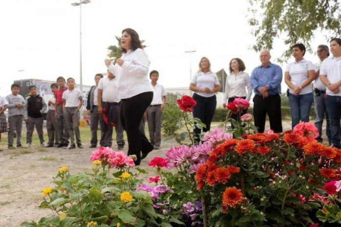 En la creación del jardín polinizador participaron autoridades asistentes y alumnos del 6º grado de la Escuela de Nueva Creación del Fraccionamiento El Campanario, ubicada en el Parque Industrial Reynosa.