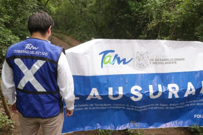 Ocampo, Tamaulipas.- Por carecer de permisos de impacto ambiental y violar el Código para el Desarrollo Sustentable del Estado de Tamaulipas, la Secretaría de Desarrollo Urbano y Medio Ambiente de la entidad clausuró el banco de materiales ubicado en el ejido La Muralla.