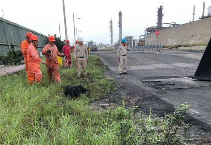 Cd. Madero, Tam.- Empleados de la refinería de Ciudad Madero lograron capturar a dos jabalís, que recorrieran en manada los patios de dichas instalaciones.
