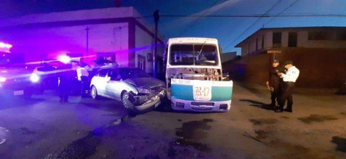 Al parecer un descuido provocó que rebasara el límite de alto impactándose contra la unidad de transporte público de la ruta 17.
