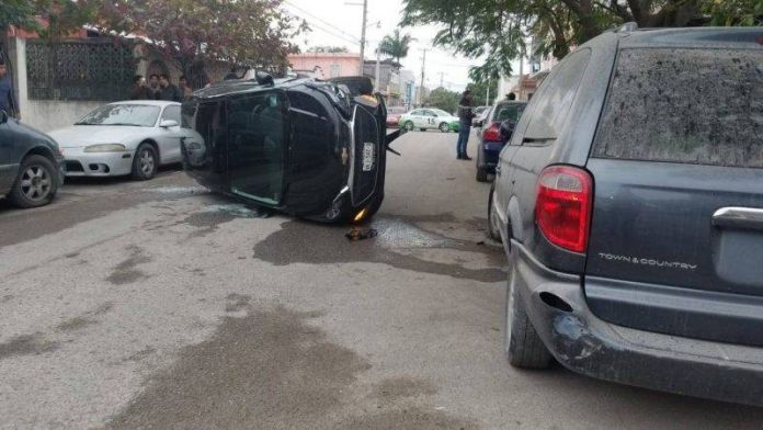 Cd. Victoria, Tam.- A punto de sufrir lesiones de consideración estuvo un joven luego de chocar con dos vehículos estacionados y finalmente volcar.