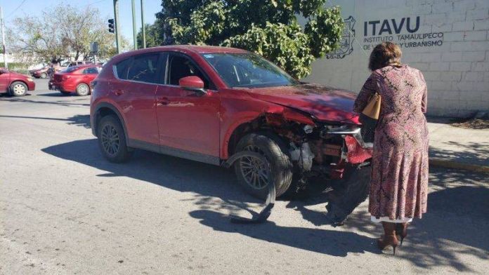 La mencionada desplazaba la unidad por la calle 19, y al cruzar el bulevar la mujer no respeto la luz roja del semáforo para después impactar una camioneta familiar tipo Voyager.