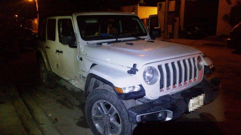 Más tarde, alrededor de las 23:30 horas, durante un recorrido de seguridad y vigilancia en la colonia Santa Fe, Policías Estatales ubicaron en condición de abandono un Jeep Wrangler color blanco con placas del estado de Texas, que tenía los vidrios abajo y la luz interior prendida.