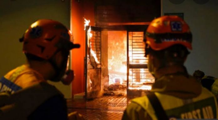 Manifestantes en Hong Kong iniciaron un incendio con bombas molotov en la noche del domingo dentro de las instalaciones de gobierno que fueron declaradas como una posible zona de cuarentena si aumentaran las víctimas del coronavirus.