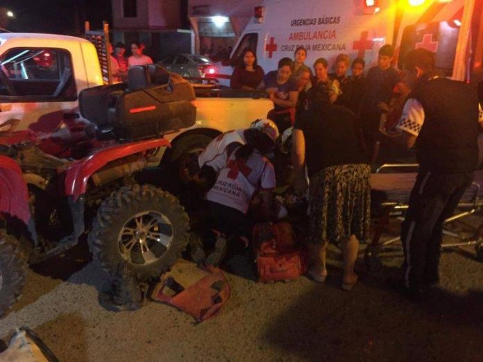 Para tomar conocimiento acudió el perito de Tránsito Local, acompañado de agentes viales, señalando que el accidente ocurrió cuando presuntamente los adolescentes viajaban en una cuatrimoto marca Suzuki por la Calle 5 de Febrero en sentido de poniente a oriente.