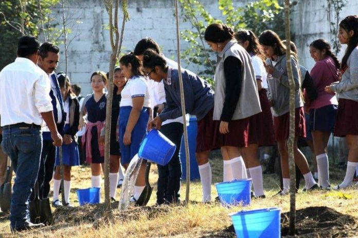 Aunado a lo anterior autoridades estatales y municipales realizaron trabajos de reforestación en el área de educación física de la secundaria, con apoyo de Directivos y la comunidad escolar.
