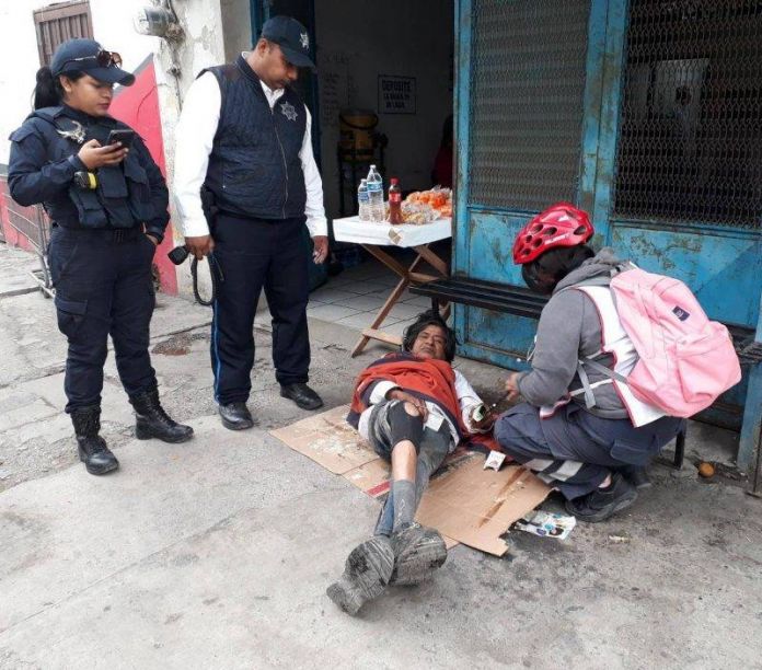 Cd. Victoria, Tam.- El indigente, mejor conocido como “Juan Perros” resultó con una lesión en su pierna derecha luego de caer de su propia altura.
