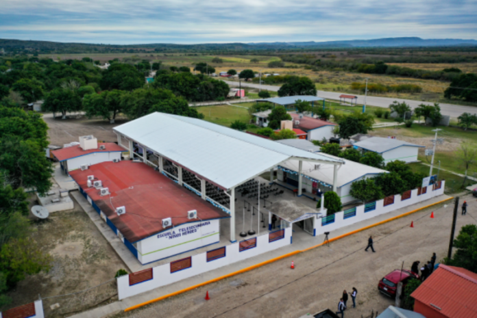 Poblado Las Tunas, Soto la Marina, Tamaulipas.- El gobernador, Francisco García Cabeza de Vaca, inauguró la mañana de este jueves la techumbre metálica de la Telesecundaria «Niños Héroes» en esta localidad, que mejorará sus actividades académicas, culturales, deportivas y de vinculación con la comunidad del plantel.