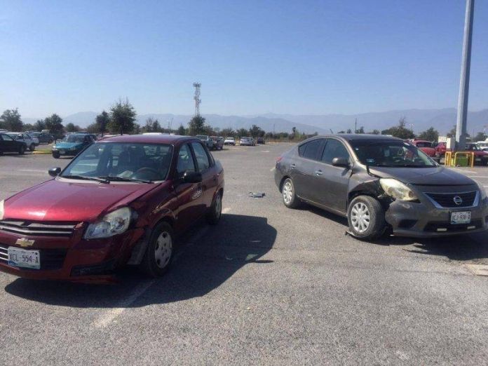 Cd. Victoria,Tam.- La colisión entre dos vehículos al interior de un estacionamiento, dejó como saldo varios miles en daños materiales y por suerte ninguna persona lesionada.