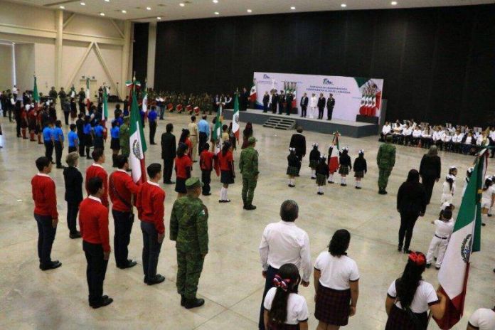 Durante una ceremonia donde abanderó a escoltas conformadas por alumnos de los niveles de educación básica, media superior y superior, Gómez Monroy añadió: “Nuestra Bandera Mexicana simboliza la unidad de hombres y mujeres que nos dieron libertad y justicia, principios que exaltan el proyecto transformador de nuestro Gobernador, quien ha dispuesto lograr la paz y la prosperidad sostenible para nuestro Estado”.