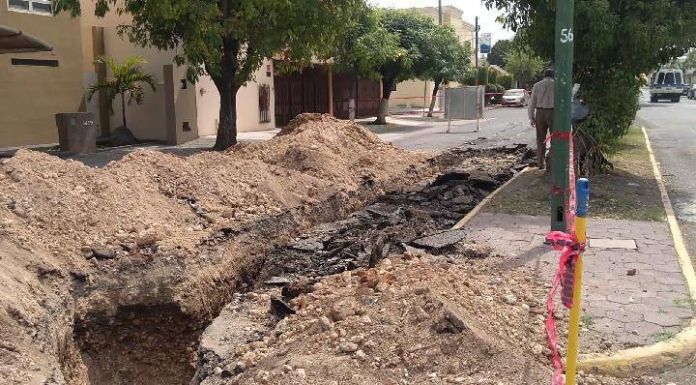 Ante la llamada de uno de los vecinos, este medio acudió a la zona, ahí se documentó en video una zanja que mide lo largo de la cuadra, en el carril que corre de sur a norte entre las Calles Vista Hermosa y Patrocinio Huerta sobre el 13.