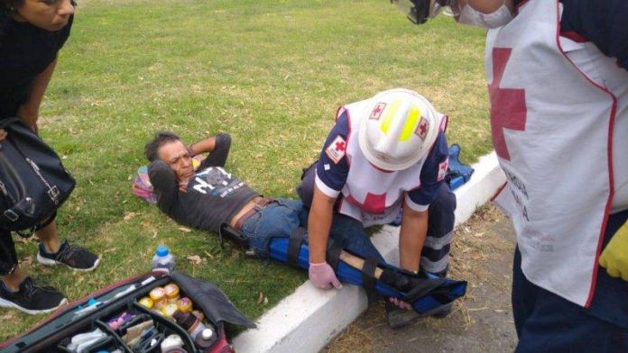 Paramédicos de Cruz Roja arribaron a la zona para atender a una persona del sexo masculino el cual sufrió fractura en su pie derecho.
