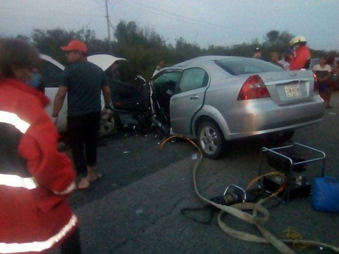 Según trascendió el accidente ocurrió a la entrada del ejido El Saladito, cuando un vehículo Chevrolet Aveo se estrelló de frente contra una camioneta Chevrolet Silverado, esta última de la cabecera municipal de Soto La Marina.