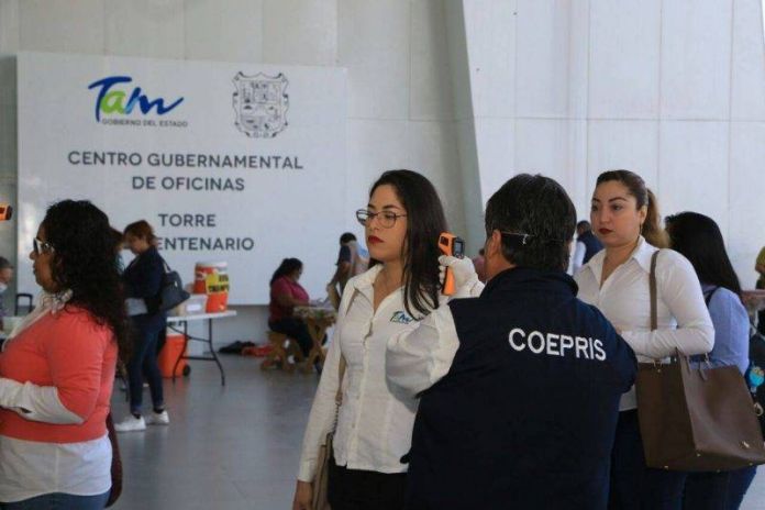 Ciudad Victoria, Tamaulipas.- Aunado a las medidas que el Gobierno de Tamaulipas está implementando para reducir las posibilidades de contagio por el coronavirus (COVID-19), y atendiendo las indicaciones del Gobernador, Francisco García Cabeza de Vaca, la Secretaría de Administración en coordinación con la Secretaría de Salud, COEPRIS y personal de Protección Civil, colocó filtros de bioseguridad para detección temprana de síntomas en los edificios gubernamentales.