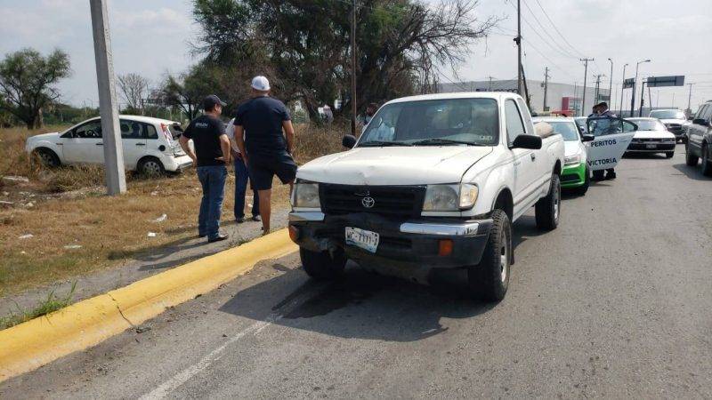 Cd. Victoria, Tam.- El conductor de una camioneta impacto en la parte posterior a un vehículo donde viajaba madre e hijo y terminó lanzándolos fuera de la carretera.