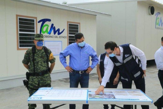 El Gobernador visitó el Hospital General de Matamoros “Dr. Alfredo Pumarejo”, donde se edifica el módulo hospitalario móvil que permitirá ampliar la capacidad de la institución de salud en caso de ser necesario.