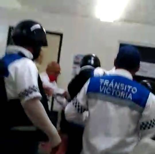 Elementos de tránsito se impusieron a lo que llamaron órdenes del Alcalde de Ciudad Victoria, Xicoténcatl González Uresti y sacaron a patadas y empujones al Coordinador Operativo, Antonio Mora Matus.