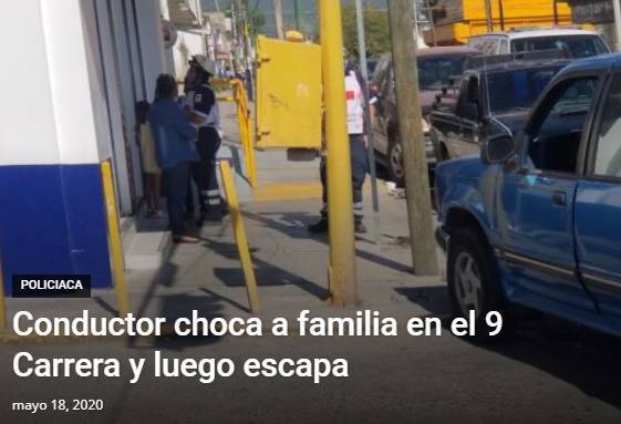 El perito en turno, informó que como presunto responsable aparece una camioneta Chevrolet Equinox, la cual presuntamente se hacía desplazar de sur a norte por Zeferino Fajardo.