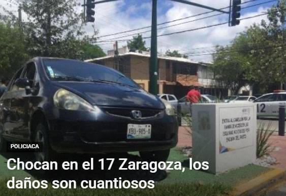 Presuntamente al llegar al cruce con calle Tamaulipas rebasa el límite de alto, virando a su derecha chocando contra una camioneta Nissan de reciente modelo.