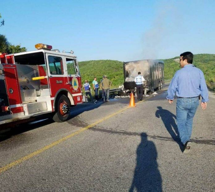 Cd. Victoria, Tam.- Al parecer un corto circuito provocó que un camión de una empresa cervecera se incendiara y quedará completamente calcinada.