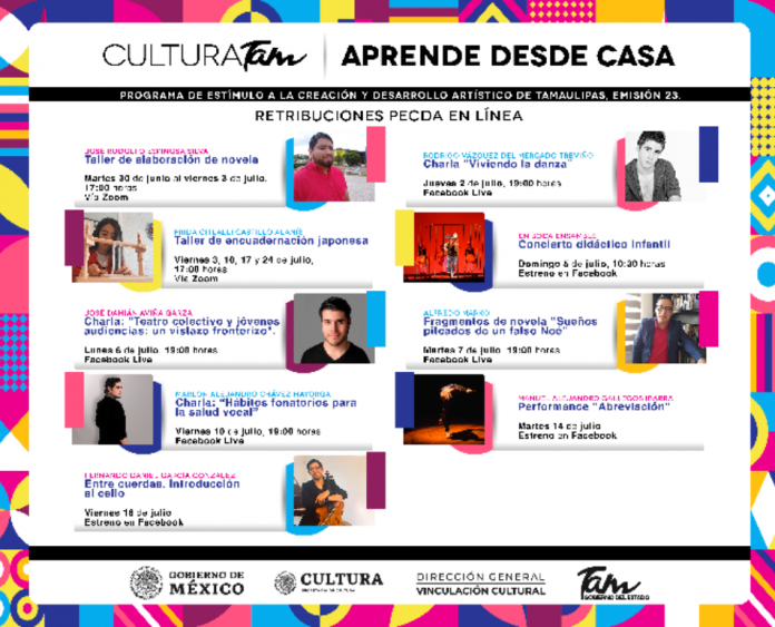 Las actividades se llevarán desde plataformas digitales como el Facebook de Cultura Tamaulipas, videos en vivo y talleres con grupos reducidos a través del programa Zoom donde podrán tener una retroalimentación de manera constante.
