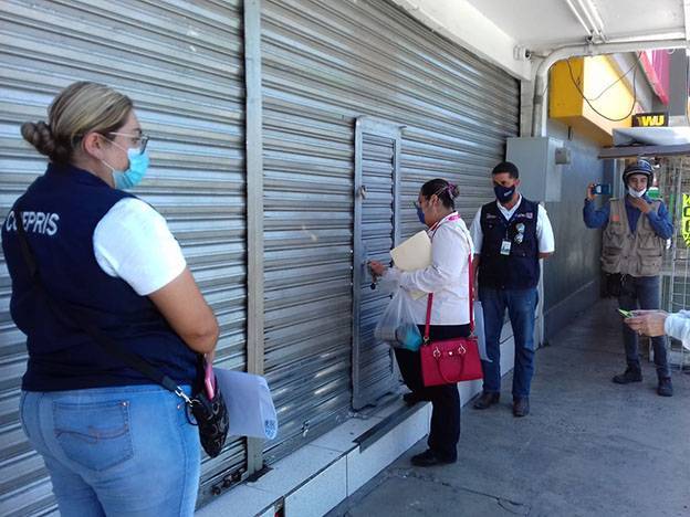 Cd. Victoria,. Tam.- La Comisión Estatal para la Protección Contra Riesgos Sanitarios, (COEPRIS) colocó esta tarde los sellos de suspensión de actividades a la tienda Elektra ubicada en la zona centro de Victoria.